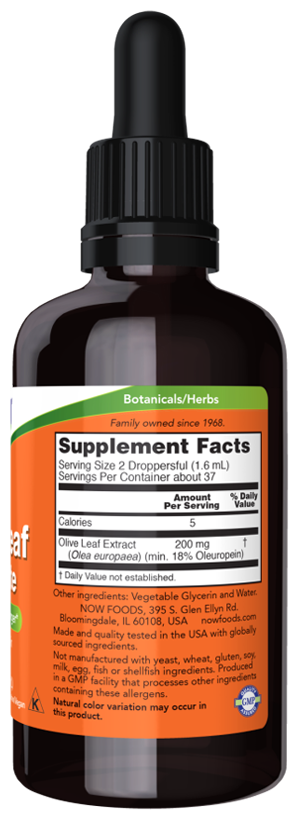 NOW Olive Leaf Glycerite 18%, 59 мл