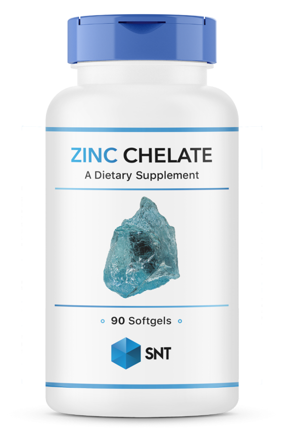 Хелатные формы цинка с наилучшим усвоением. Цинк является иммуномодулятором, тормозя распространение вируса в организме и стимулируя выработку клеток Т-киллеров. Этот минерал участвует в образовании тестостерона и инсулина, необходим для нормализации сахара в крови, влияет на рост волос, состояние ногтей и на секрецию сальных желез, а также укрепляет кости.