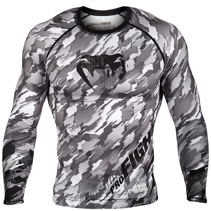 Рашгард Venum Tecmo это настоящая камуфляжная форма для солдата смешанных единоборств, отличающаяся мощным арсеналом технологий, удобным кроем и износостойким материалом.