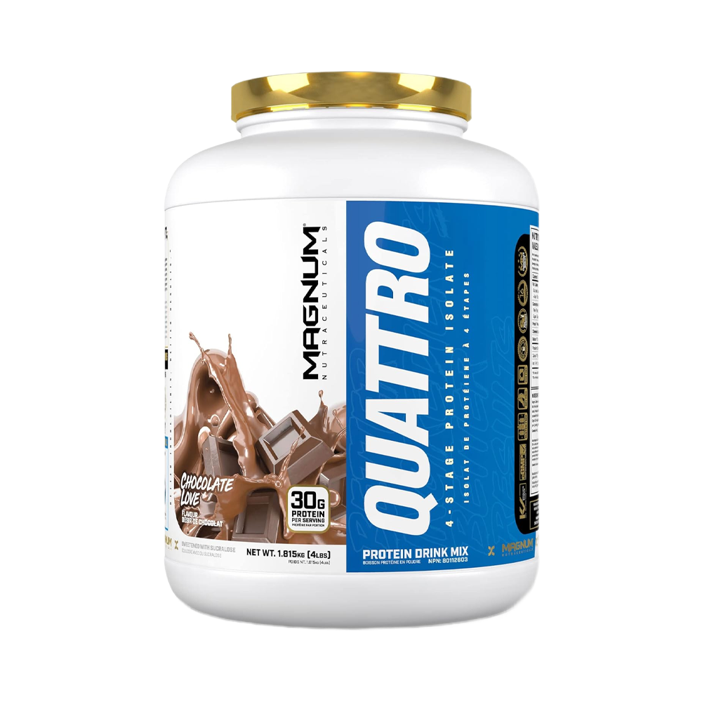 MAGNUM QUATTRO это четырехкомпонентная белковая смесь. У каждого из этих белков различается скорость усвоения, что даёт постоянное поступление аминокислот для организма на протяжение восьми часов.