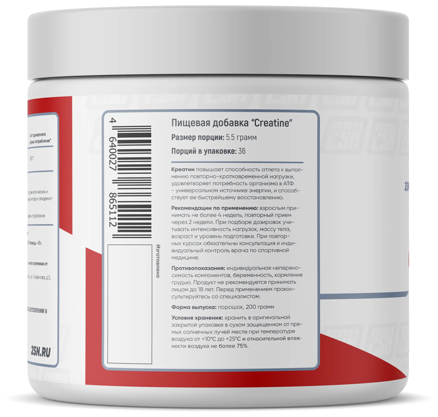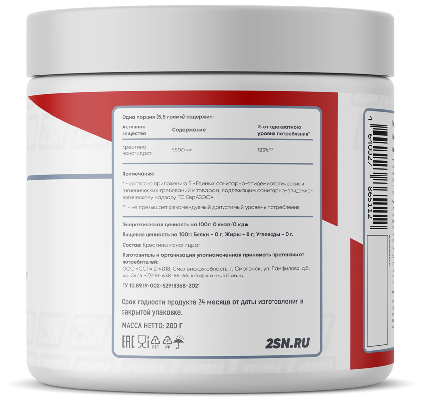 2SN Creatine - это основной источник энергии для организма при выполнении высокоинтенсивной нагрузки. Креатин является энергетическим субстратом для производства АТФ, когда мышцы подвергаются силовой или скоростно-силовой работе.