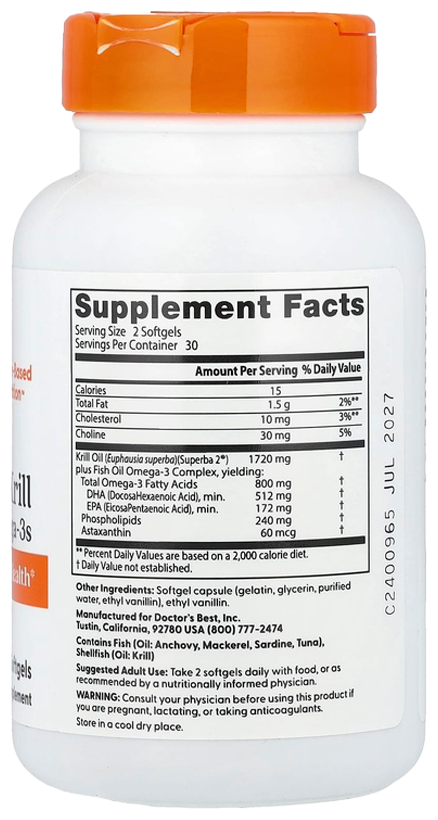 Doctor's Best Enhanced Krill plus Omega 3, 60 капсул