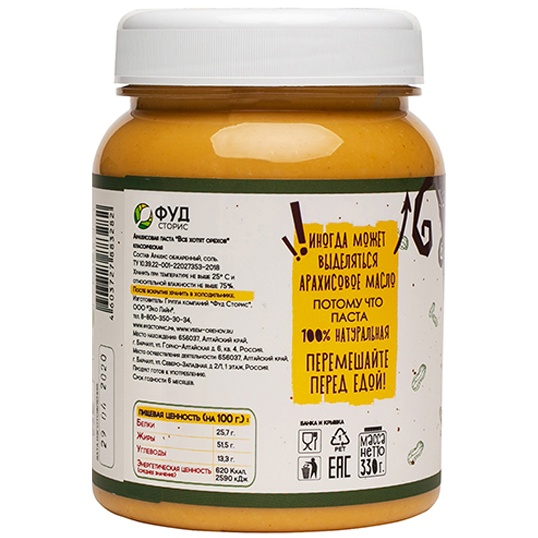 Фудсторис Арахисовая паста "Все хотят орехов" Классическая, 330 г