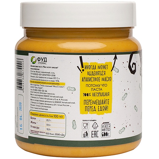 Фудсторис Арахисовая паста "Все хотят орехов" Классическая, 600 г