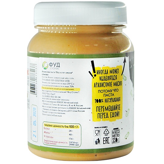 Это почти классическая арахисовая паста. С той лишь разницей, что здесь добавлен мёд. Поэтому вкус у пасты сладко-солёный. Попробуйте, вы удивитесь, насколько это аппетитно.