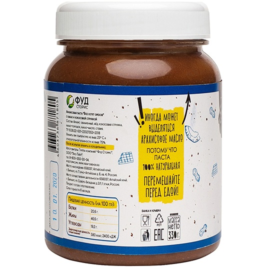 Фудсторис Арахисовая паста "Все хотят орехов" с Какао и кокосовой стружкой, 330 г