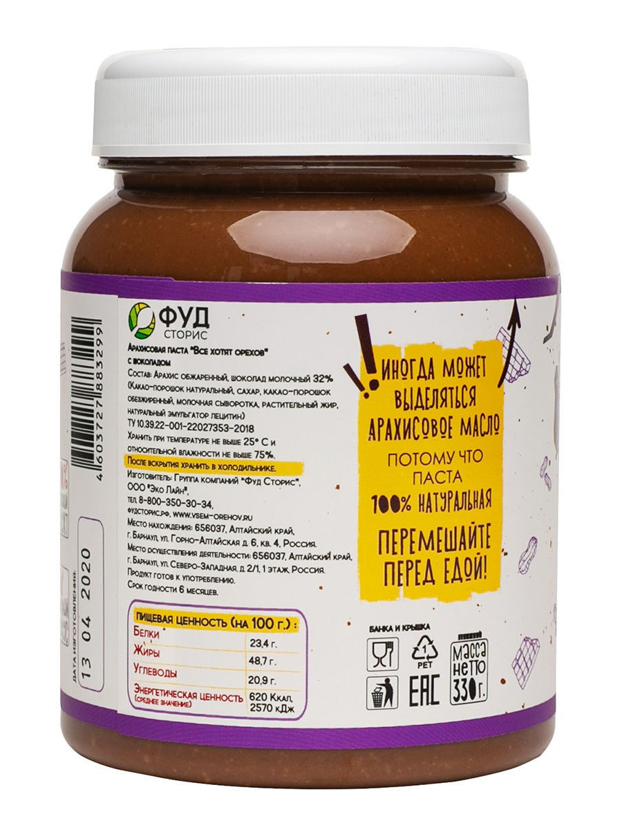 Фудсторис Арахисовая паста «Все хотят орехов» С Шоколадом, 330 г