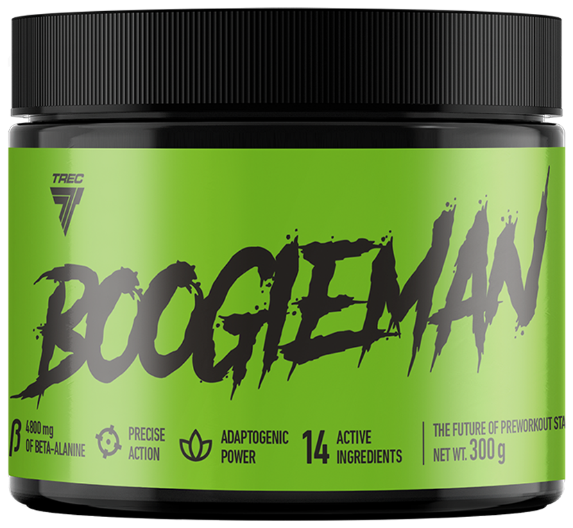 Boogieman от Trec Nutrition - это эффективный предтренировочный комплекс как для профессиональных спортсменов, так и для любителей. В нем нет агрессивных психостимуляторов, допинга, герани или эфедрина. С этим продуктом Вы забудете о дрожании рук, чувстве разбитости и проблемах с желудком.