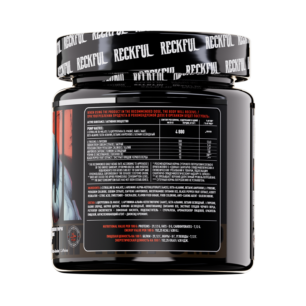 Reckful The Pump позволит вам добиться невероятной эффективности ваших тренировок. Силовые показатели, выносливость и концентрация поднимутся до непривычных высот.