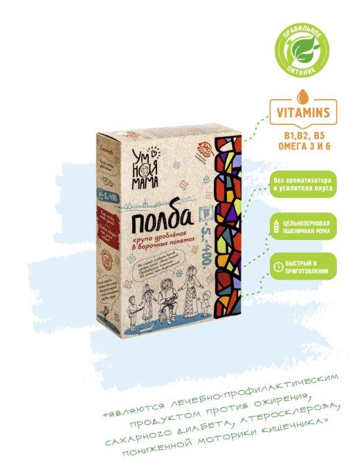 Полба дробленая в варочных пакетах "Умная Мама" содержит практически все питательные вещества, в которых нуждается человек, в гармоничном и сбалансированном количественном сочетании - и не только в оболочке зерна, а равномерно во всем зерне. Регулярное употребление в пищу полбы способствует укреплению иммунитета, нормализации уровня сахара в крови, улучшению работы сердечно-сосудистой, эндокринной, нервной, пищеварительной и репродуктивной систем, а также в значительной степени снижает риск развития анемии, инфекционных и онкологических заболеваний. Полба подходит для людей, страдающих целиакией (аллергией на глютен - белок, содержащийся в зернах таких злаков, как пшеница, рожь, овес и ячмень).