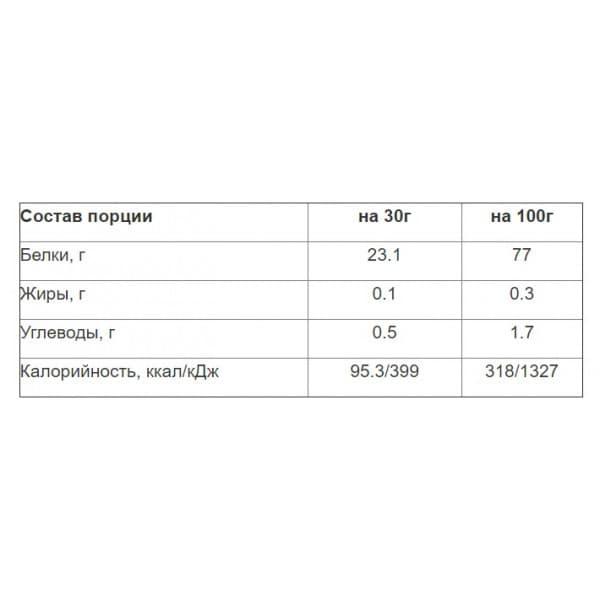 Изолят натурального соевого белка, практически без жиров и усваиваемых углеводов. Содержание белка 77%, 23г в порции.