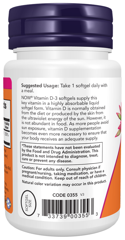 NOW Vitamin D-3 2000 IU, 120 капсул
